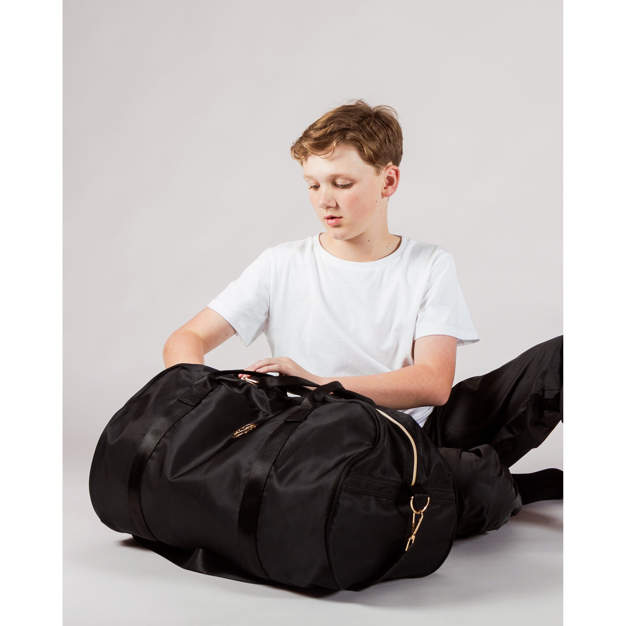 Carry everything you need for a busy day of dance in The Nova Duffle bag. Why you'll love it: Removable crossbody strap Carry handles for easy transport Convenient internal and external zip pockets Plenty of room to carry all your dance essentials Ultra-durable, water-resistant, easy-care fabric Accented with rose gold trim for an elegant touch Size : 56cm (L) x 26cm (W) x 30cm (H)
