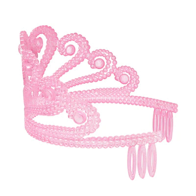Fulfill her ballerina dreams with this Pink Poppy's Ballerina Jewel Heart Crown. The integrated combs ensure the crown can stay securely into the hair during play. Featuring an ombre translucent base and a dazzling pink heart pendant centerpiece, this crown is perfect for play pretend!