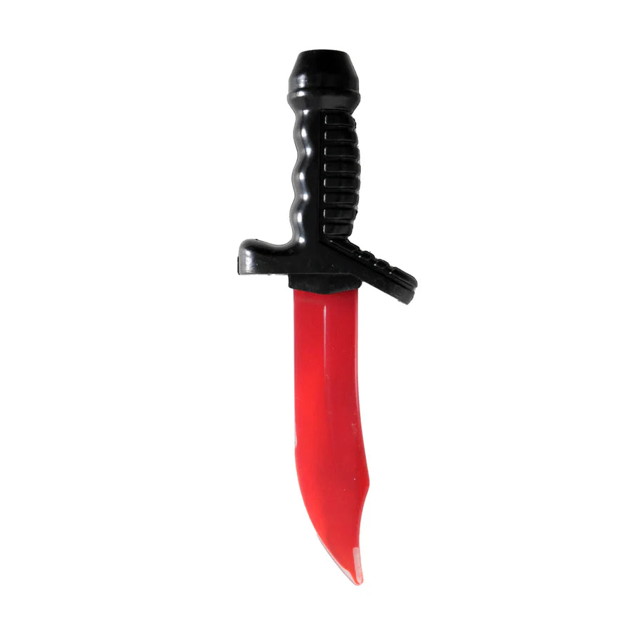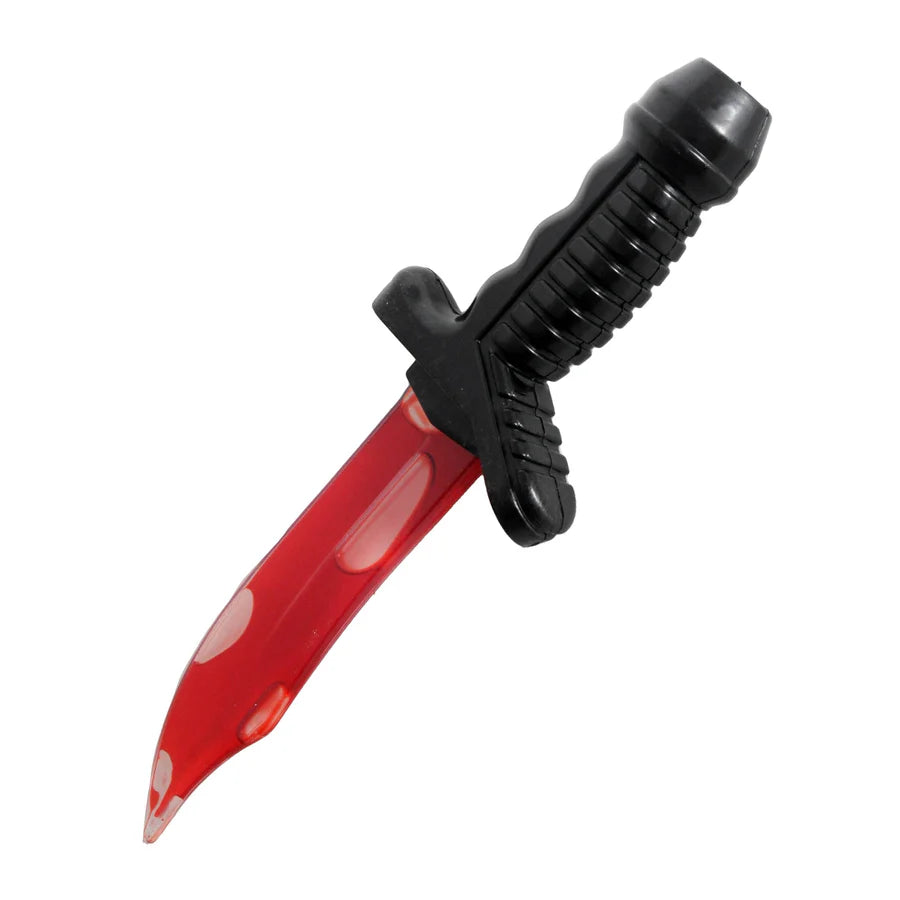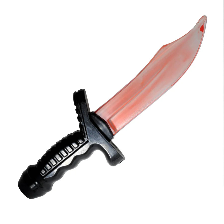 Add a spooky twist to your Halloween outfit with this lightweight plastic knife! Flip it one way to show a clean blade, then flip it the other to reveal creepy blood. Perfect for some frightful fun!