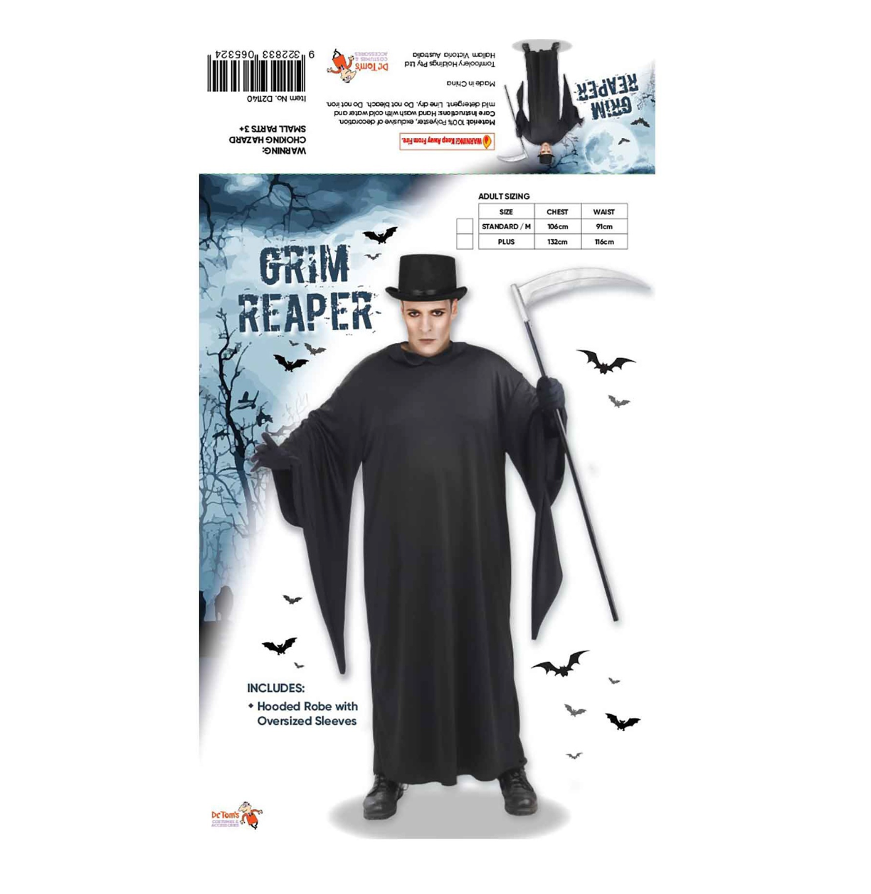 Embrace the chilling presence of the Grim Reaper with our adult-sized costume, perfect for Halloween or any spooky-themed event. This hauntingly elegant outfit is designed to capture the essence of the iconic harbinger of doom.