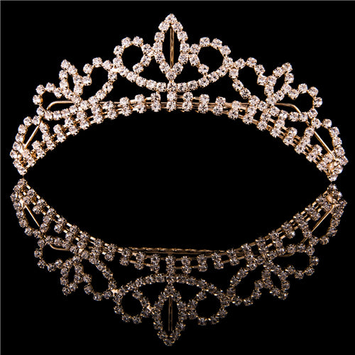 This tiara is a beautiful swirl design with sparkling crystals which will make a stunning hair accessory. Scupltured as a half moon to fit nicely to the contour of the head, with a slide comb attached. Length: 12cm, height: 3.5cm Available in Gold or Silver
