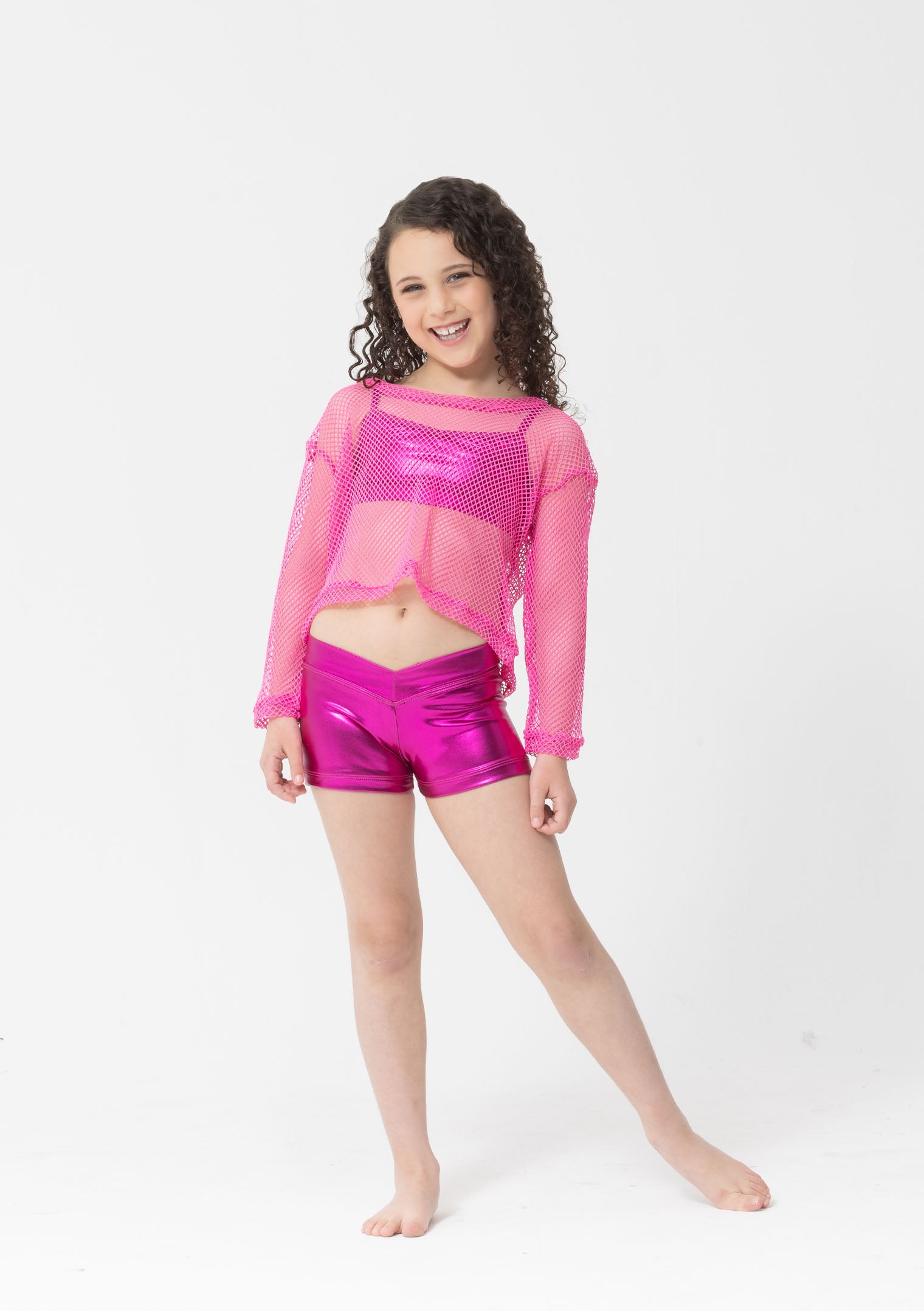 Our Long Sleeve Fishnet Crop is great as the centre piece of your dance costume, or to complement your ensemble. This fishnet dance crop gives great movement as you dance, or it can be tied or tucked for a shorter style.