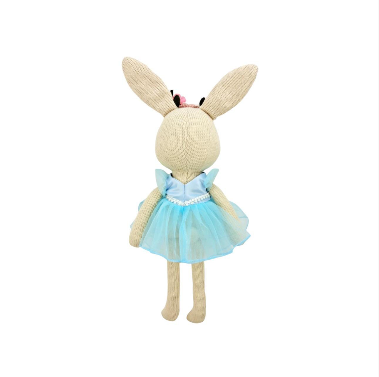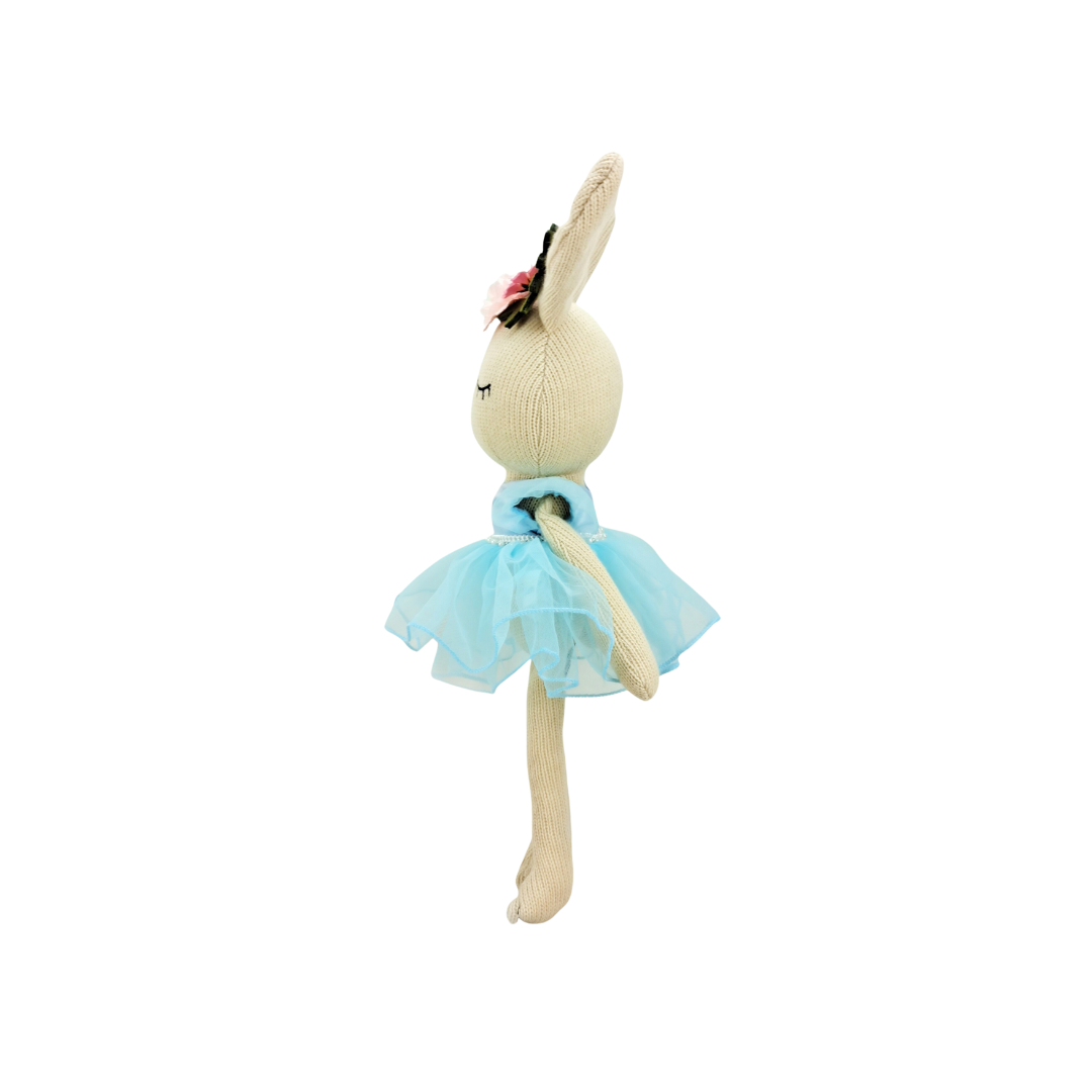 Introducing the adorable knitted bunny plush toy, donning an enchanting blue dress! This charming companion combines the softness of a plush toy with the timeless appeal of a handcrafted knitted creation, making it a perfect addition to any cuddle collection.