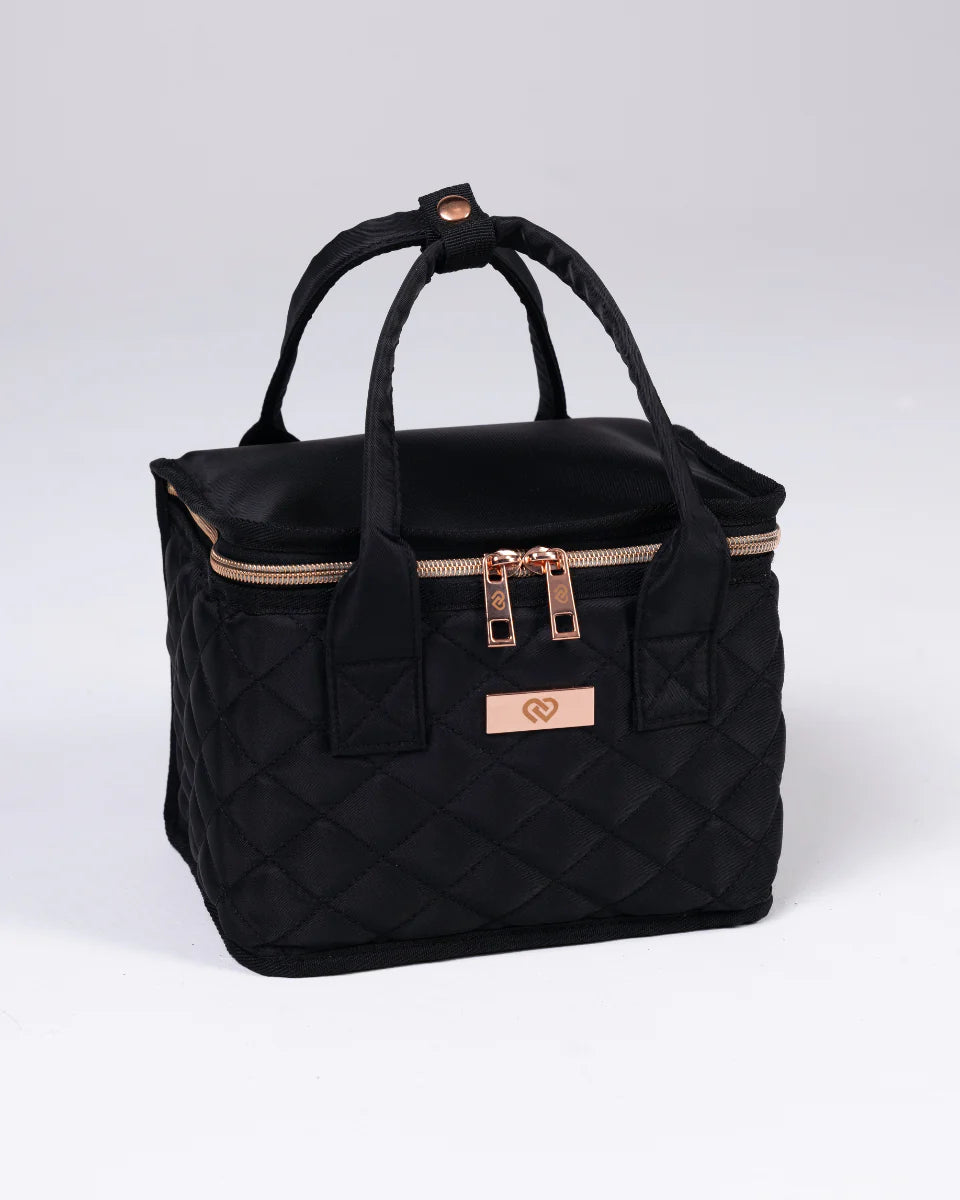 Get ready to eat lunch in style with Claudia Dean's  Pro-Lunch Box. Silver insulated interior and a waterproof exterior guarantees a fashionable and practical eating experience for those long school and dance days. The Pro-Lunch Box can also double as a makeup or toiletry bag, making it incredibly versatile. Available in black with rose gold detailing, your favourite combination.