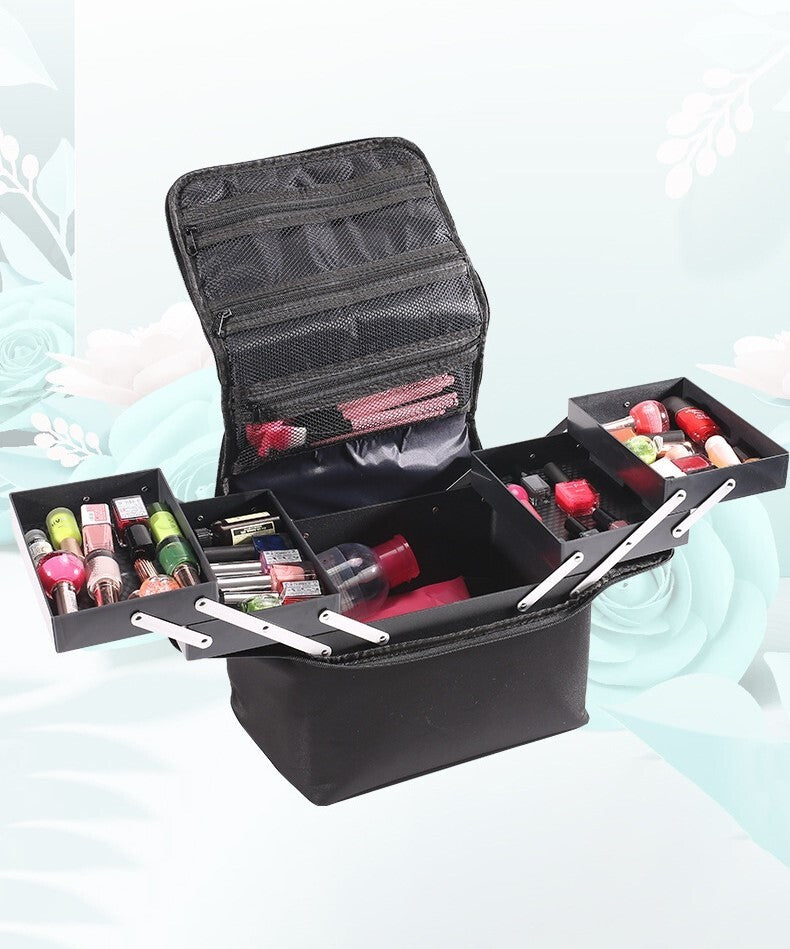 One of the unique features of the Ruby Case is the expanding shelves. Once you open the case, the trays inside expand out, providing multiple tiers for organising your items. When fully opened the tiers provide access to the bottom of the case, where your larger items can be stored.