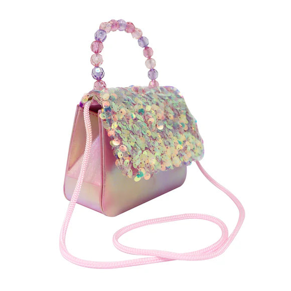 This iconic Pink Poppy Dazzling Sequin Handbag is fashioned with a hot pink fabric and a glistening iridescent sequin flap. Completed with a beaded handle, magnetic stud for easy closure and an additional cord shoulder strap for hands-free play, it is the perfect accessory for any occasion.