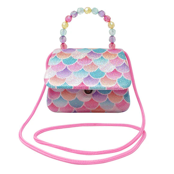 This Iconic Pink Poppy's Shimmering Mermaid Handbag is decorated in shiny fabric with fun mermaid scale prints.