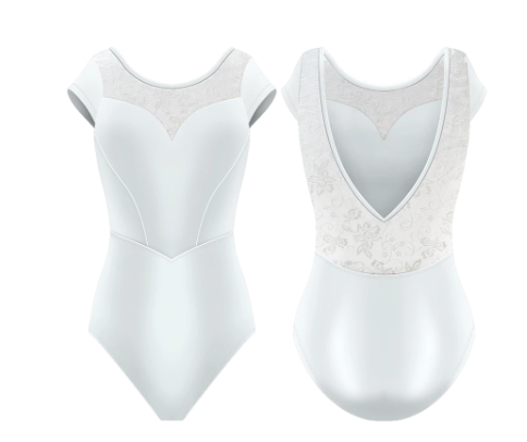 • A delicate front 'V' curved neckline Luxurious stretch pattern lace with a cap sleeve  Featuring the DANSE DE PARIS signature bodice panelling