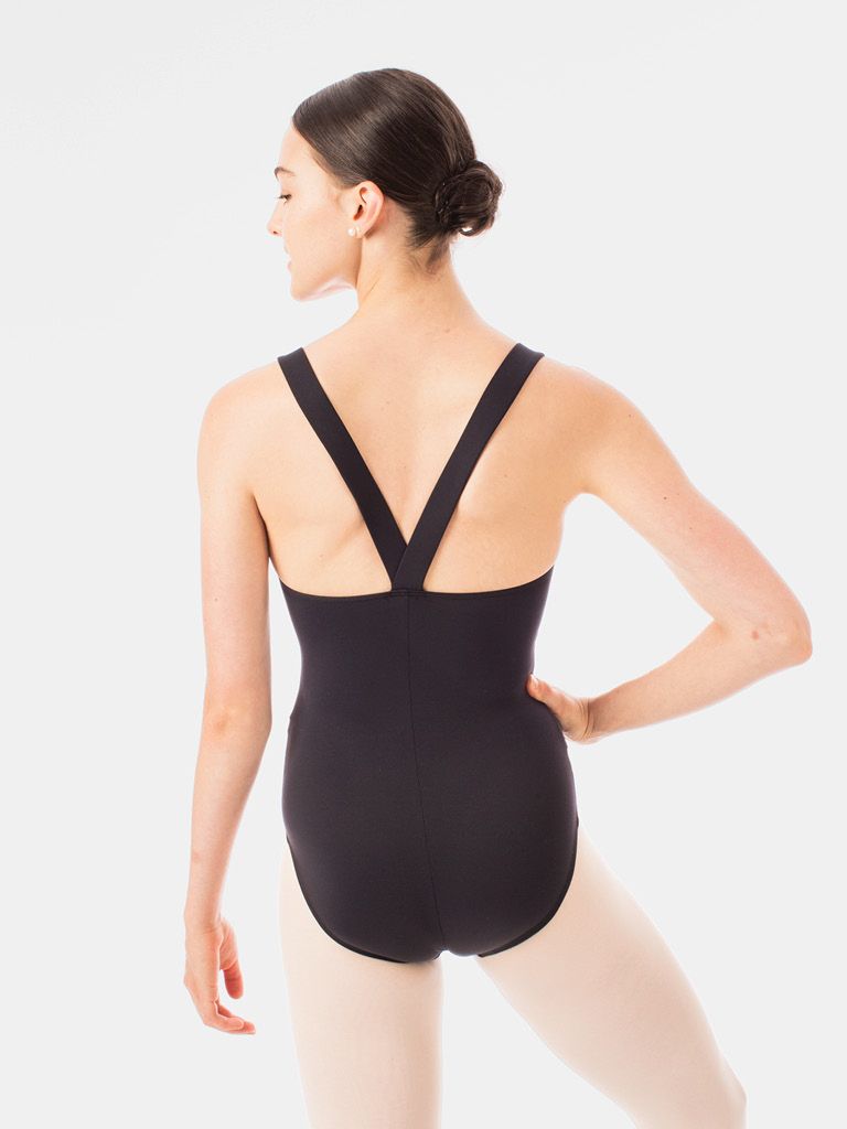 RECYCLED COLLECTION Bashful Bunhead? Timid Trina? Not anymore! Fire up your inner Diva and be the boldest dancer in the studio. Strong geometric mesh panels punctuate a strikingly seamed torso. Emphatic V shape in back. Bra liner. Made from an ingeniously sustainable fabric manufactured from recycled materials. 78% Recycled Polyamide, 22% Elastane