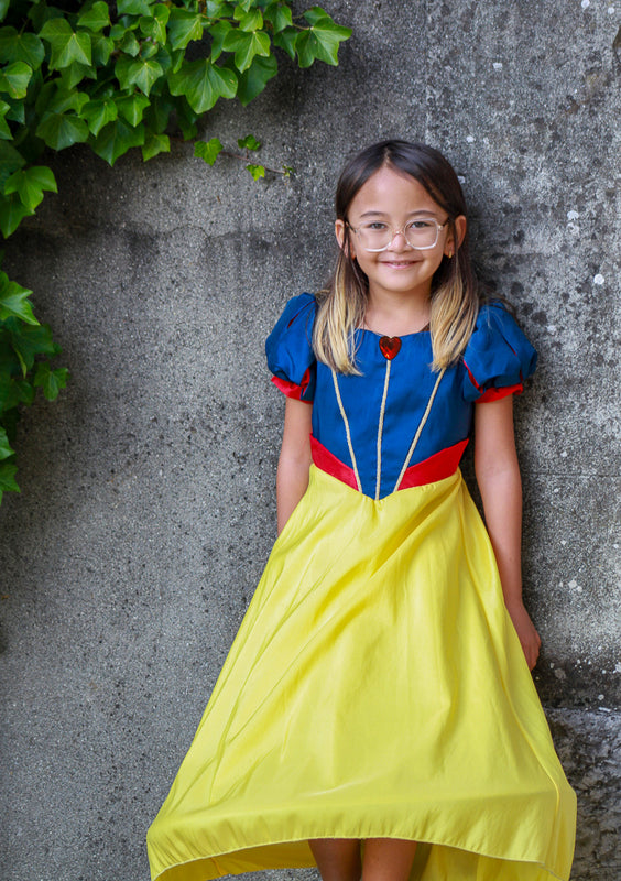 the Snow White Gown is made using soft fabrics that are gentle on the skin and free of any loose glitter.