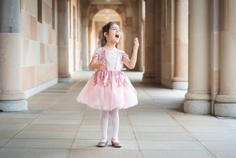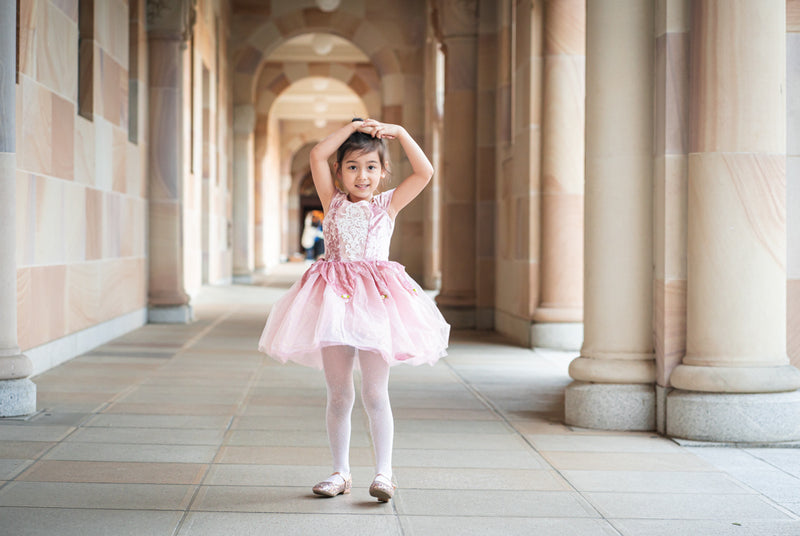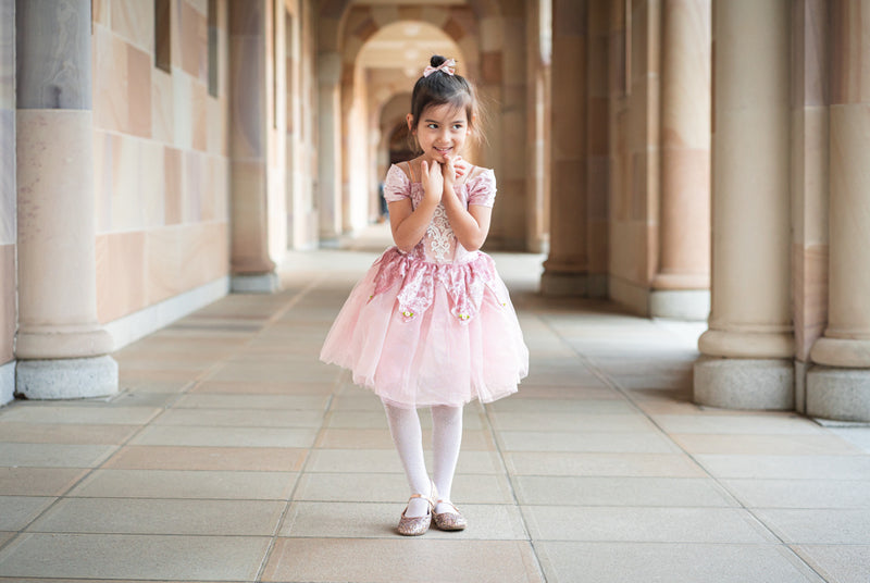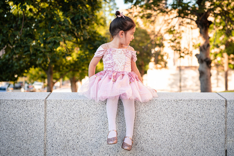 This high-quality dress features a skirt that has been designed with heat-sealed sparkles to ensure there for no glitter shedding.