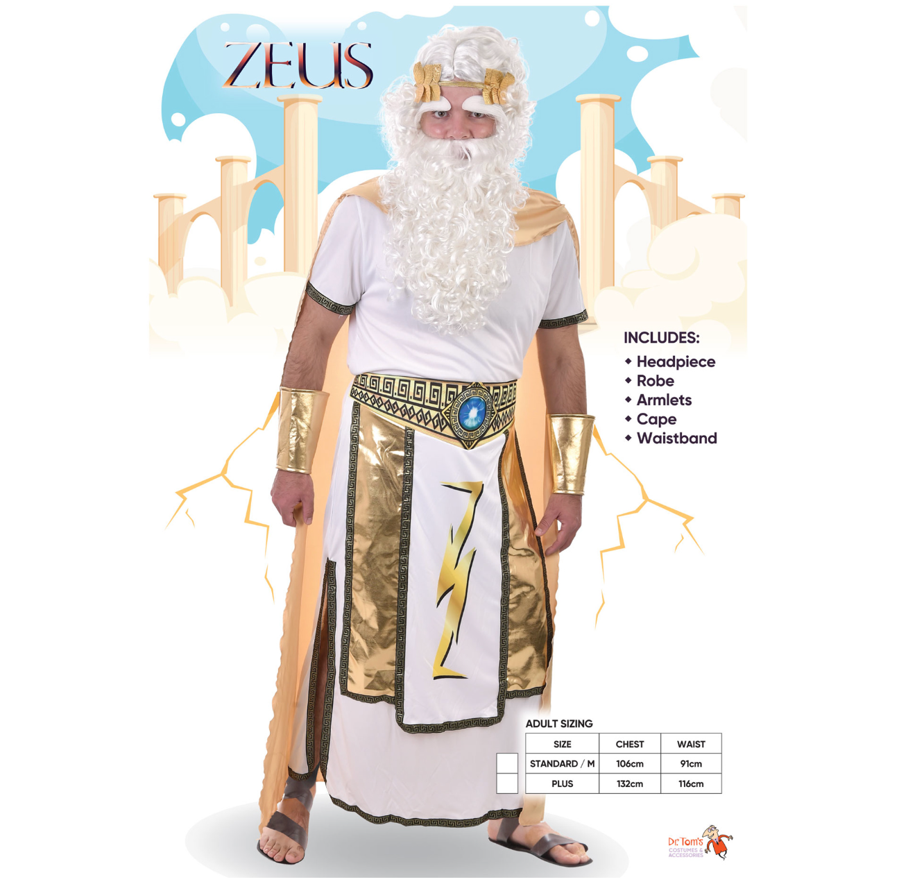 Unleash your inner deity with our Adult Zeus Greek God Costume! Command attention as the ruler of the gods in this majestic outfit, designed to make you the center of any costume event.