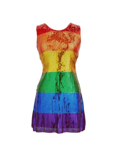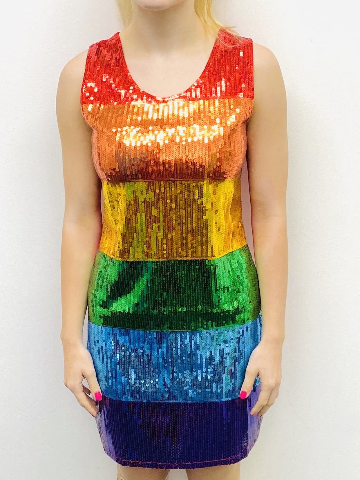 Sparkle the night away in your new favourite party piece. This Rainbow Sequin Dress is short sleeve, and suitable to fit Men, Womens or Teens.