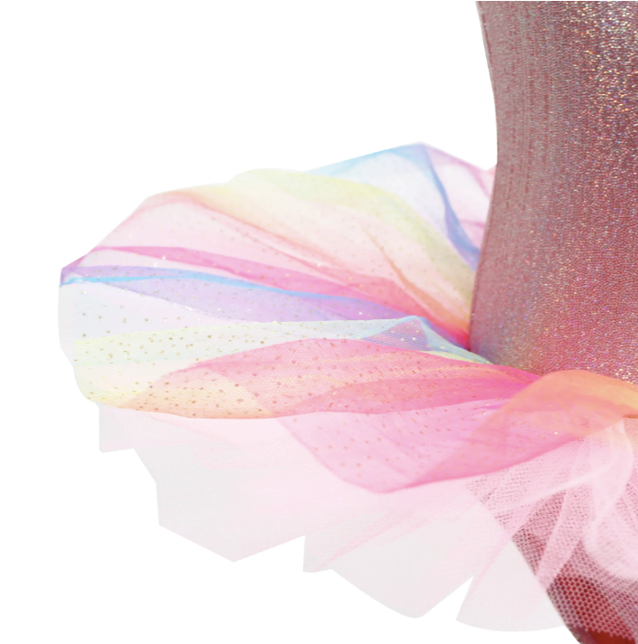 Make her day magical and bright with this Unicorn Dreamer Rainbow Party Tutu by Pink Poppy. A multi-layered tutu skirt features a soft rainbow sparkly tulle. The comfortable stretch, jersey bodice with integrated leotard pants and adjustable shoulder straps for the perfect fit. Our classic practice half tutu is beautifully crafted with layers of stiff tulle that is graduated for a full and voluminous skirt.