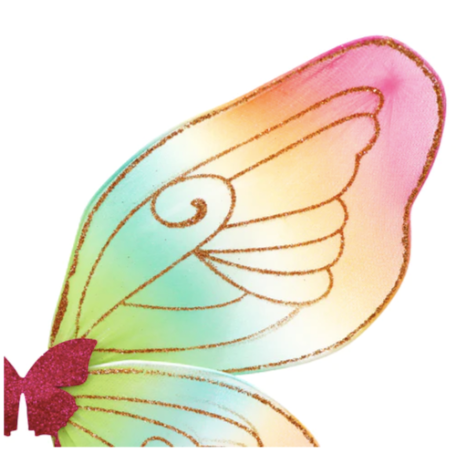 Inspire imagination with a pair of Glittering Rainbow Brights Wire Wings by Pink Poppy. The glittery wings are made in a soft semi transparent rainbow mesh, with comfortable elasticated shoulder straps. Easy to put on these wings are great for indoor and outdoor play, parties and dressing up.