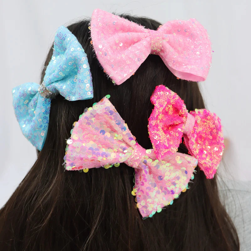 Calling all Romantics! Pink Poppy's Romantics Bow Hair Clips are perfect to make the whole place shimmer. This is the perfect accessory to transform you into screaming colour. With various glistening sequin fabrics these bow hair clips are vibrant and enchanting. So channel your inner superstar because this will be the best thing thats ever been yours!